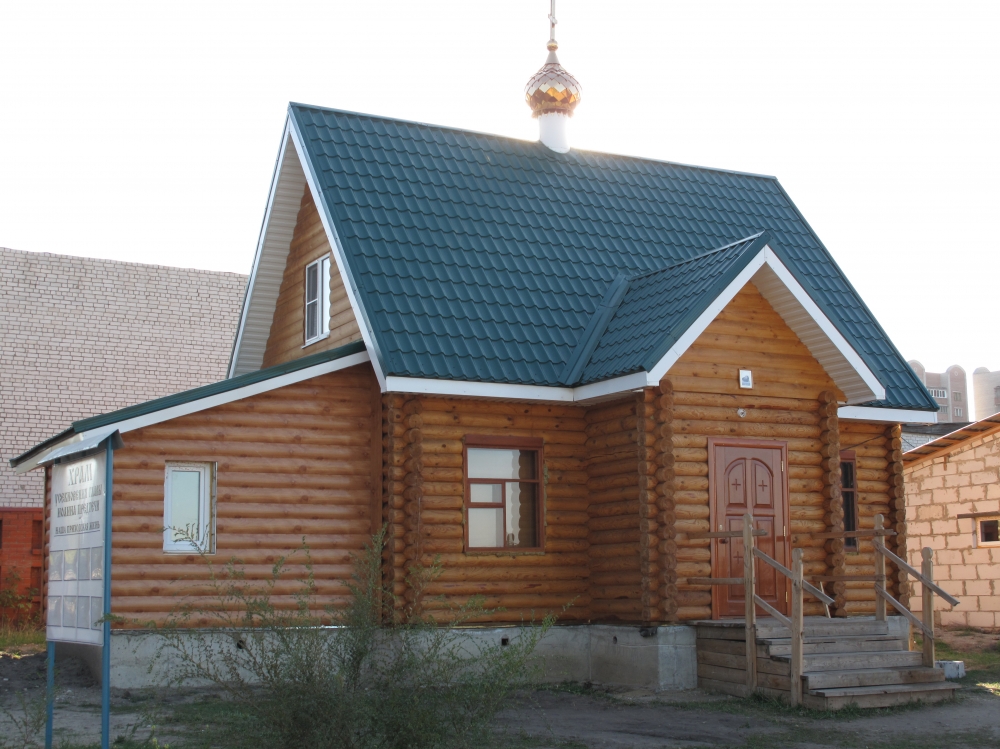 О храме - Временный деревянный храм на Левобережном кладбище существует с 4 апреля 2010 года. Построен стараниями Олега Александровича Меркулова.