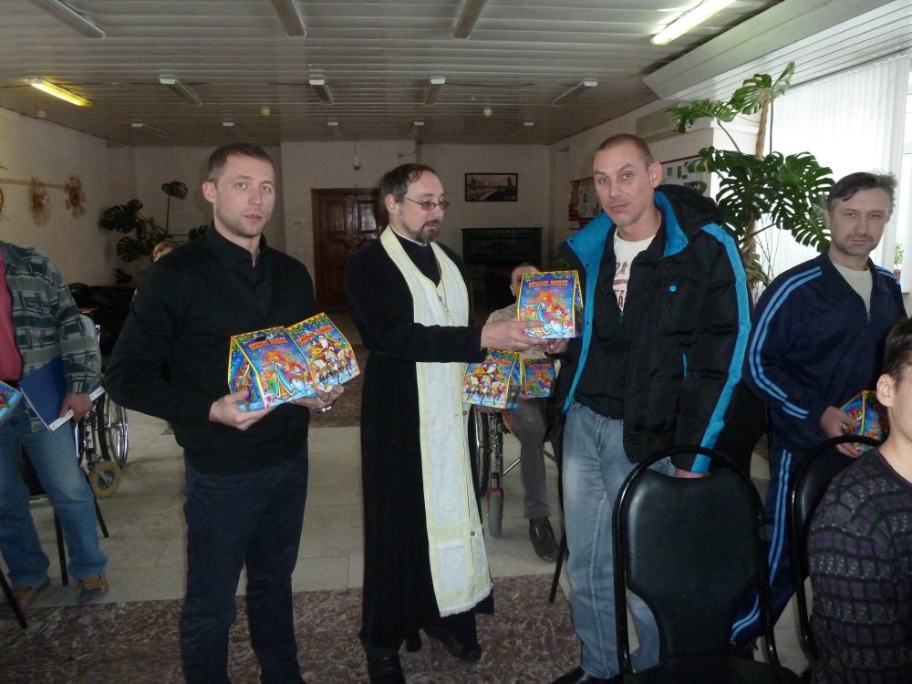 15 января иерей Михаил Попов и помощник благочинного Левобережного церковного округа по миссионерскому служению Анатолий Епифанов посетили Областной центр реабилитации инвалидов молодого возраста. Анатолий рассказал обучающимся в Центре историю праздника Рождества Христова, затем отец Михаил отслужил праздничный молебен. Все присутствующие получили подарки от прихода Казанского храма.